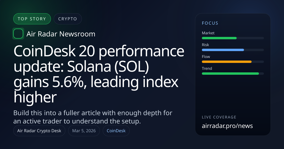 Current source notes point to the following context: Headline: CoinDesk 20 performance update: Solana (SOL) gains 5.6%, leading index higher Category: Crypto Source: CoinDesk Published at source: 2026-03-04T14:28:02.000Z Reference URL: https://www.coindesk.com/coindesk-indices/2026/03/04/coindesk-20-performance-update-solana-sol-gains-5-6-leading-index-higher