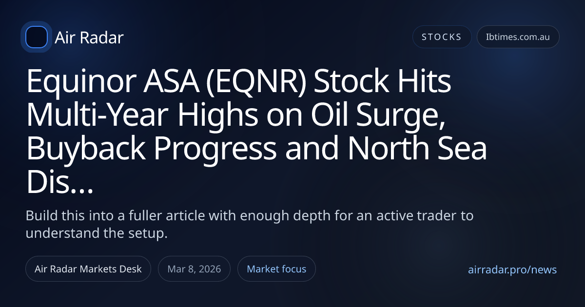 Current source notes point to the following context: Headline: Equinor ASA (EQNR) Stock Hits Multi-Year Highs on Oil Surge, Buyback Progress and North Sea Discovery Source summary: STAVANGER, Norway — Equinor ASA (NYSE: EQNR, OSE: EQNR) shares reached new 52-week highs in early March 2026, climbing above $33 on the New York Stock Exchange amid a sharp rally in global oil