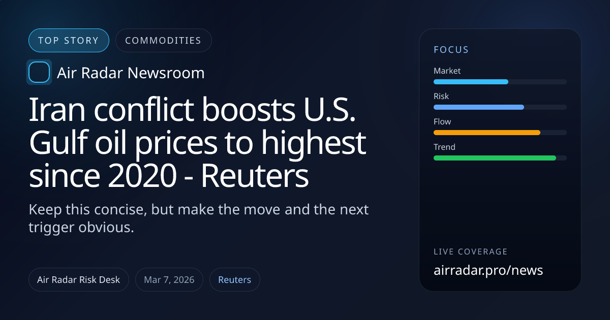The move in iran conflict boosts u.s. gulf oil prices to highest since 2020 - reuters is the part that matters first. Traders usually care less about the headline itself than whether the price reaction changes positioning, liquidity, or near-term conviction.