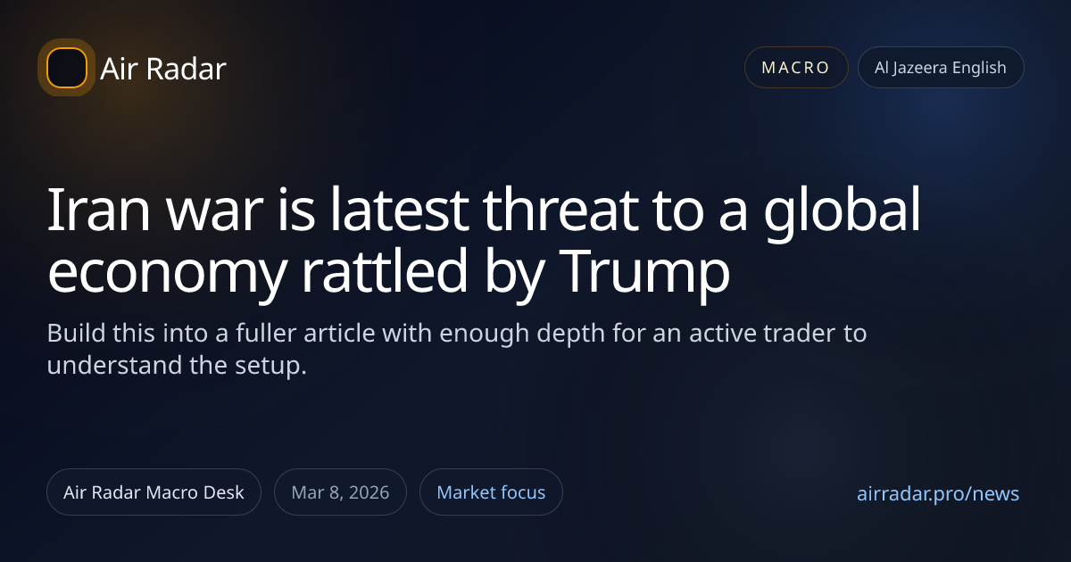 Current source notes point to the following context: Headline: Iran war is latest threat to a global economy rattled by Trump Source summary: Rising energy prices threaten to stoke inflation and hobble economic growth in countries around the world. Category: Macro Source: Al Jazeera English Published at source: 2026-03-07T00:27:18Z Reference URL: https://www.aljazeera.co
