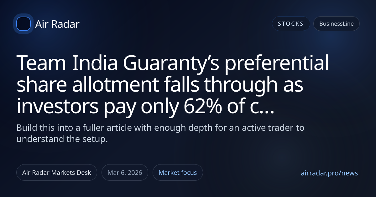 The move in team india guaranty’s preferential share allotment falls through as investors pay only 62% of consideration is the part that matters first. Traders usually care less about the headline itself than whether the price reaction changes positioning, liquidity, or near-term conviction.