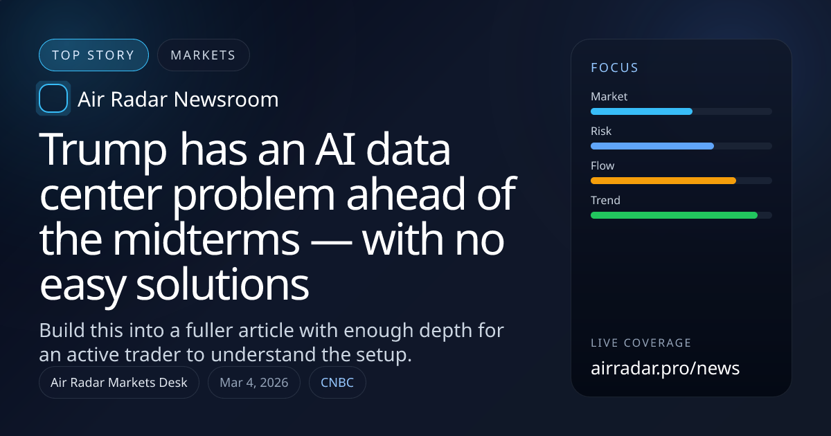 The move in trump has an ai data center problem ahead of the midterms — with no easy solutions is the part that matters first. Traders usually care less about the headline itself than whether the price reaction changes positioning, liquidity, or near-term conviction.