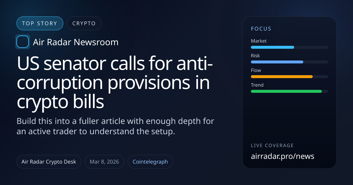 The move in us senator calls for anti-corruption provisions in crypto bills is the part that matters first. Traders usually care less about the headline itself than whether the price reaction changes positioning, liquidity, or near-term conviction.