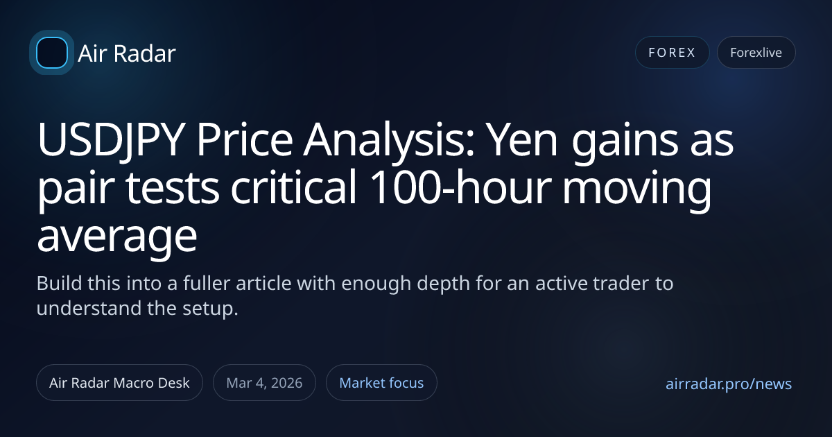 Current source notes point to the following context: Headline: USDJPY Price Analysis: Yen gains as pair tests critical 100-hour moving average Source summary: <p>The USD/JPY is under renewed selling pressure today, emerging as one of the market's biggest movers with a decline of nearly 0.50%. As broad USD strength wanes, the pair has retreated to a "make-or-break" techni